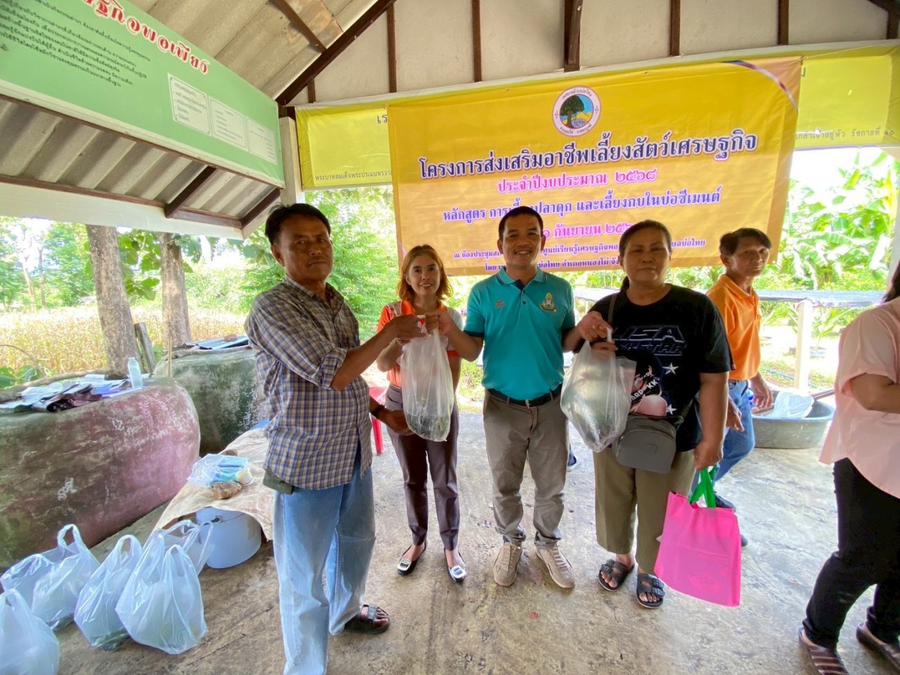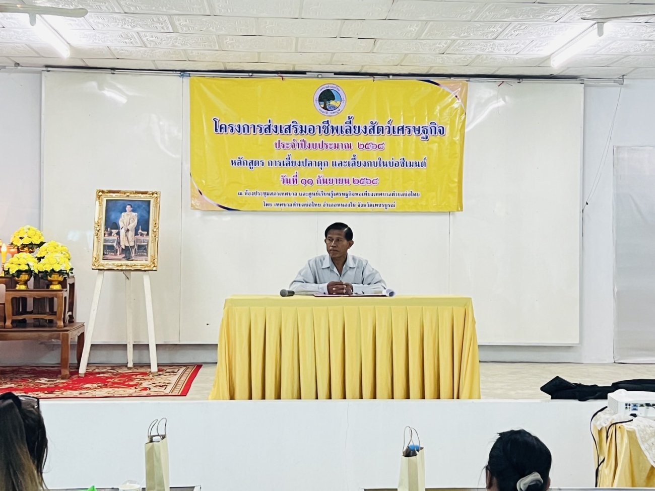 วันที่ 11 กันยายน 2568 กองสวัสดิการสังคมเทศบาลตำบลบ่อไทยจัดโครงการส่งเสริมอาชีพเลี้ยงสัตว์เศรษฐกิจ ประจำปีงบประมาณ 2568 หลักสูตรการเลี้ยงปลาดุก และกบในบ่อซีเมนต์ โดยนายศิลา สินชัย นายกเทศบาลตำบลบ่อไทย เป็นประธานเปิดโครงการ นายรุ่งโรจน์ ไตรสูงเนิน หัวหน้าสำนักปลัด รักษาราชการแทนปลัด กล่าวรายงาน พร้อมด้วยคณะผู้บริหาร สมาชิกสภาและหัวหน้าส่วนราชการเข้าร่วมโครงการ โครงการดังกลาวมีผู้เข้าร่วมอบรม จำนวน 35 คน