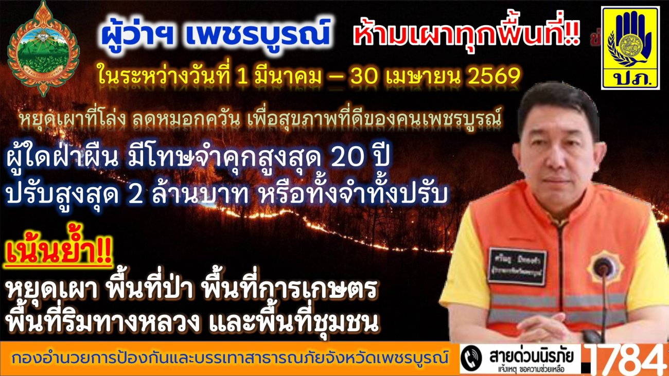 กำหนดเขตควบคุมไฟป่าและห้ามเผาโดยเด็ดขาตในพื้นที่จังหวัดเพชรบูรณ์